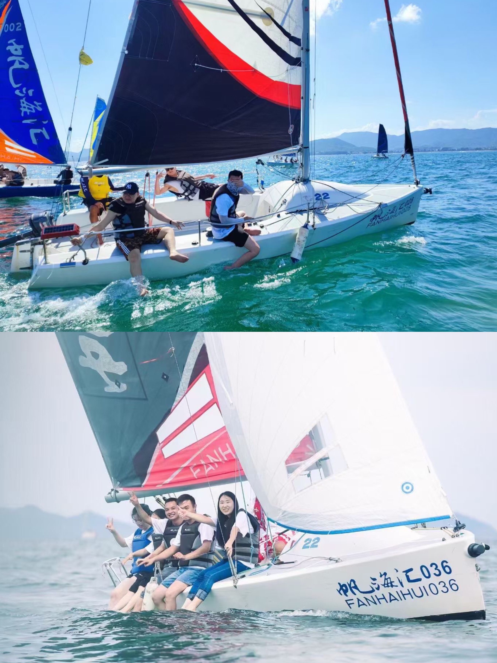 上午:主题团建【海上帆船】蓝天碧海上,同舟共济,亲身参与拉帆、掌舵等操作,体验与风浪协作的乐趣,领悟团队合作真谛