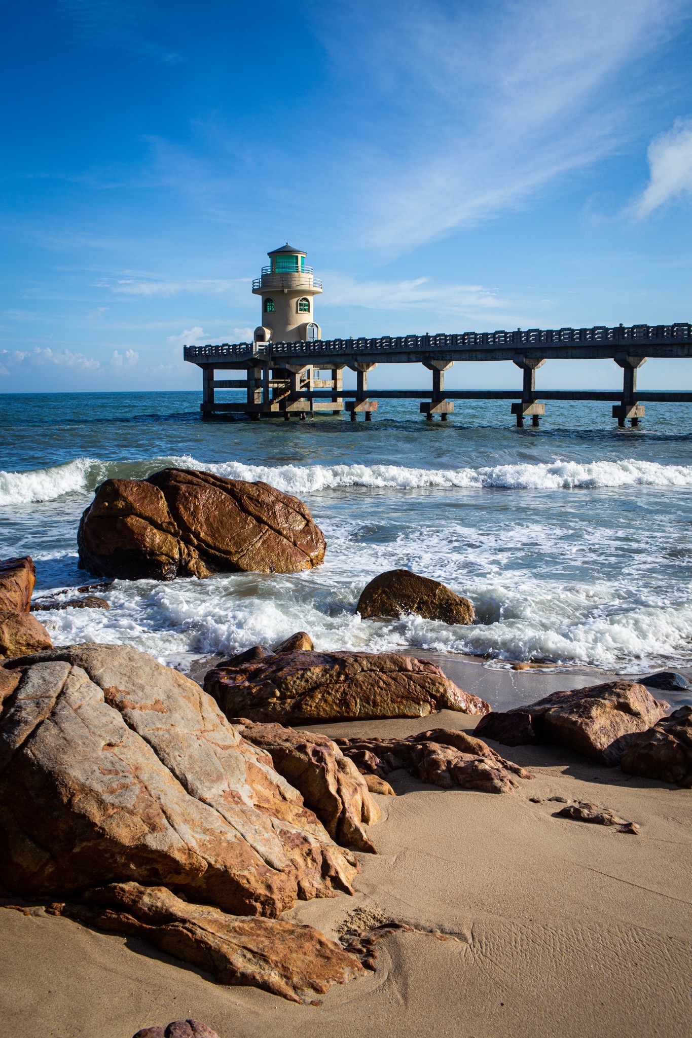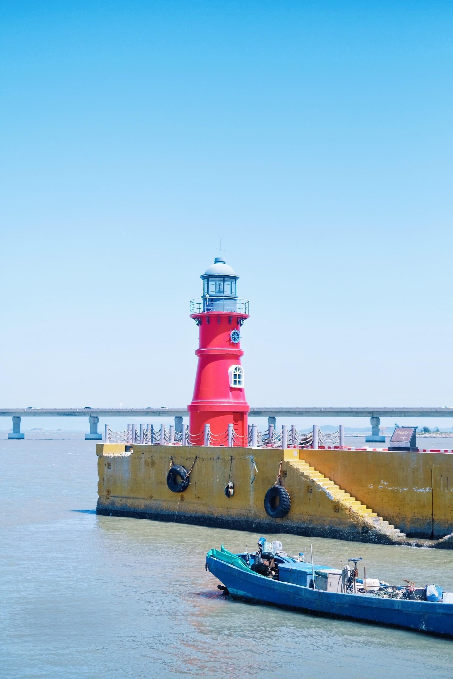 上午:【老码头红色灯塔】鲜红的塔身与蔚蓝色的大海形成了鲜明对比,是来岛旅游的必到打卡点。